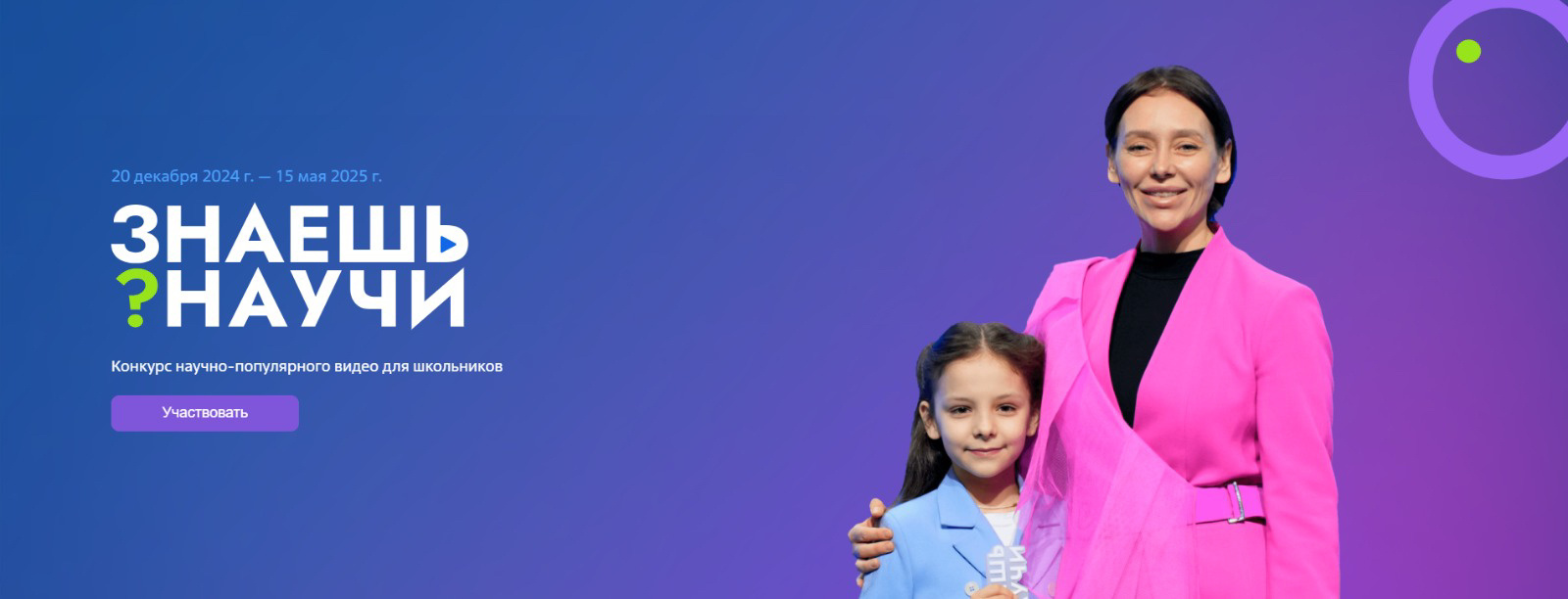1 апреля завершается прием заявок на 4 сезон конкурса научно-популярного видео «Знаешь?Научи!». Участие в нем дает возможность талантливым школьникам в возрасте от 6 до 18 лет проявить себя в роли научно-популярных блогеров, обменяться опытом и найти новых друзей.